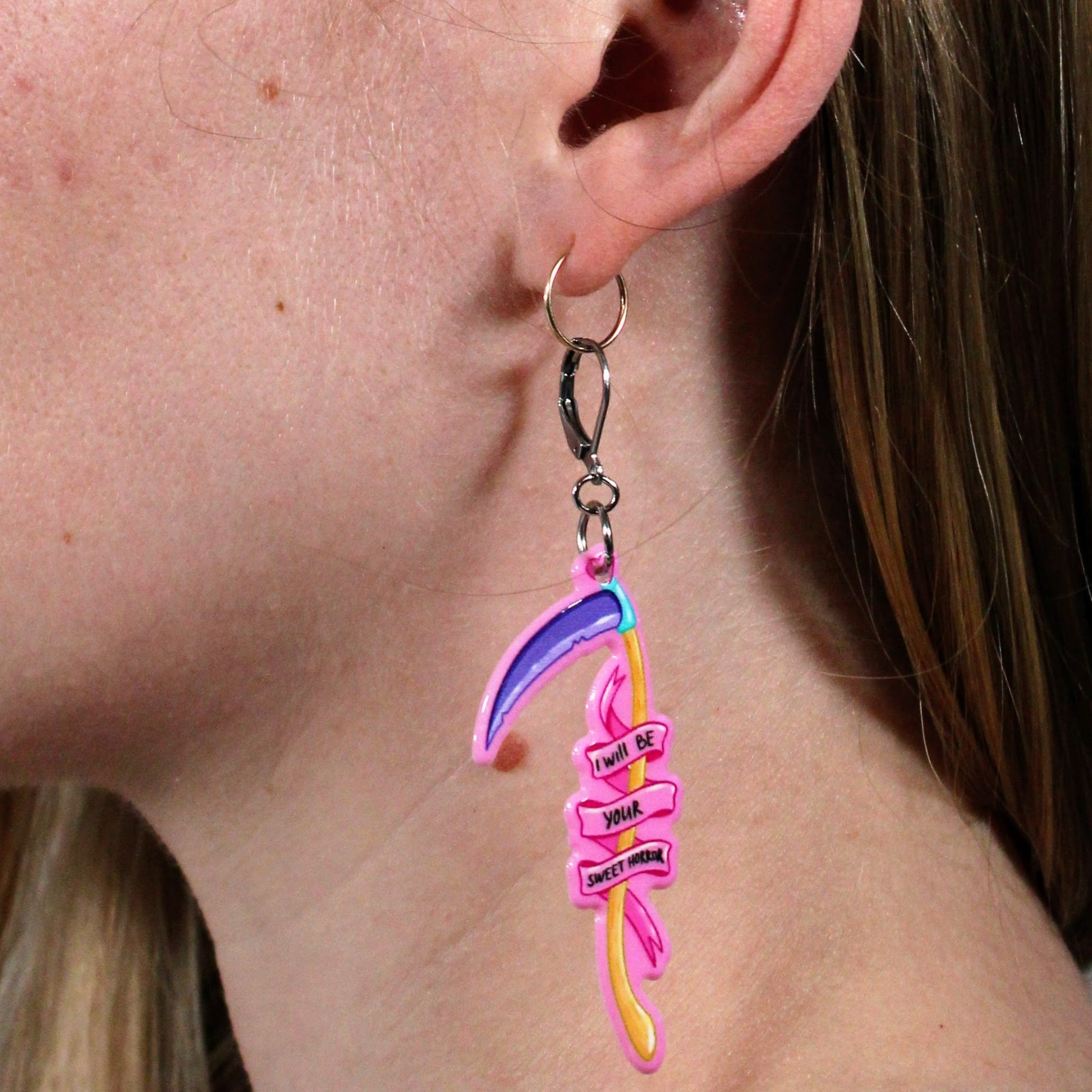 - Acrylic pendants with a lever-back clasp made of Sterling Silver